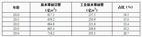 表3 2011-2014年全国工业废水排放情况