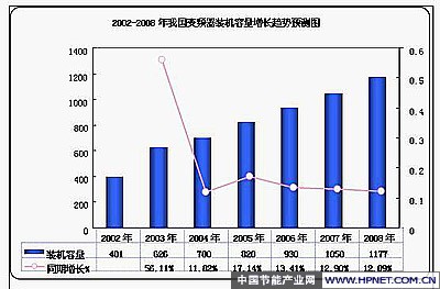 2002-2008年我国变频器装机容量增长趋势预测图