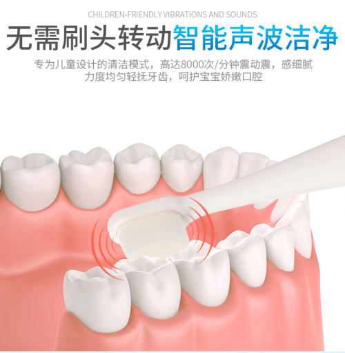 众所周知,电动牙刷的工作原理是通过震动清洁口腔,刷掉牙齿有害菌群,带走口腔内的食物残渣。倍加洁可可奈儿童电动牙刷震动频率达到8000次/分钟,小于60分贝静音环境。既能实现有效的口腔深度清洁,又完美避免了宝宝因为电动牙刷的震动声音而产生的不适感。