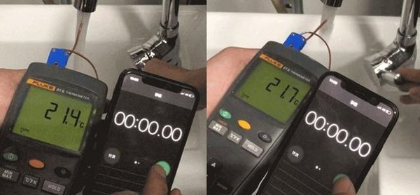为了证明即开即热的效果,A.O.史密斯将最新推出的L1PB-V9采暖炉在开启与不开启“零冷水”功能时,以同一用水点进行对比,见证“零冷水”和“非零冷水”热水出水速度的差异。