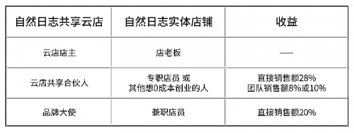 据了解,自然日志以共享云店的形式把实体店共享给有志创业的人,让有志创业者成为店铺合伙人。作为店铺店员,不用投资一分钱,就可以直接成为店铺合伙人,享受店铺红利,获得合伙人收益。在这种共享云店的模式下,实体店铺不再是简单的服务和销售产品的空间,同时也成为了一个创业培训的基地。
