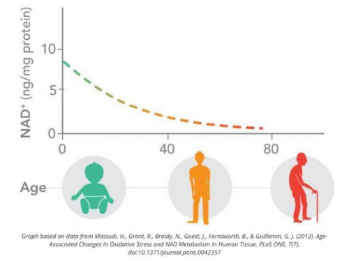 NAD+水平与年龄关系曲线图