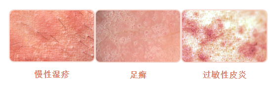 常见的皮肤病比如神经性皮炎、慢性湿疹、癣症: