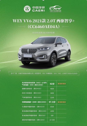 WEY VV6获中汽研两个“五星好评”,奥迪、日产、丰田都服了