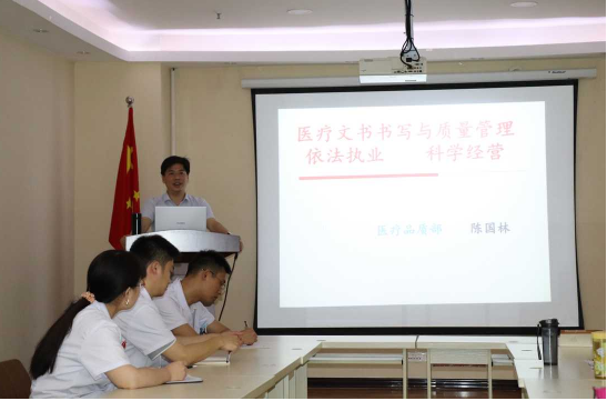 医疗质量安全是医院正常运行的基础,而正确的病历书写是保证医疗质量安全的关键。为进一步提高临床医师病历书写质量,强化医疗安全防范意识,7月24日下午,渭南益健医院开展了《医疗文书与质量管理》培训会,培训还特意邀请了陈国林老师进行授课,全院临床医生护士积极参与学习。