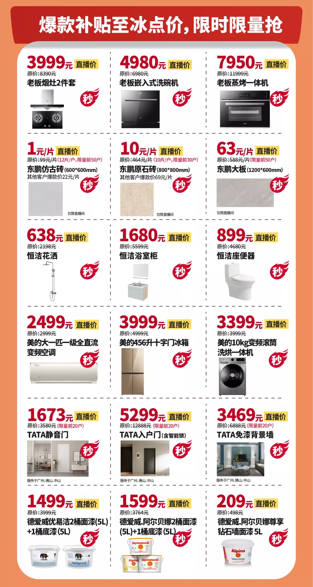 1元抢东鹏瓷砖,638元抢恒洁花洒,