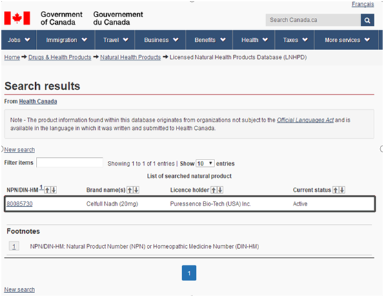 但NADH的性状非常不稳定仍是难题。这主要因为生物化学反应都是趋向于稳定的结构,NAD+的六元吡啶环单双键交替,共有三个双键,非常稳定,而NAD+与H结合形成NADH之后,六元环只有两个双键,非常不稳定,极易脱掉氢,重新回到稳定的NAD+状态。为此,赛立复联合康奈尔大学科研团队,利用前沿的还原型酶催化技术,将NAD+和氢结合起来,并利用Turn A递送体系,保证了长达2年以上的体外稳定储存,以及稳定的体内吸收,克服了NADH怕光、怕水、怕高温和怕氧化等缺点。目前已获得营养保健品管控最为严苛国家之一加拿大政府颁发的销售许可NPN认证