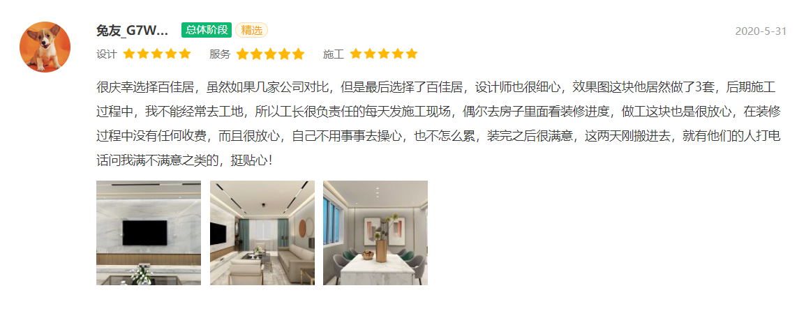 “可我听说百佳居公司不好啊?”树大招风,当一个企业做大以后,有什么样的评价都不足为奇,主要看客户受众能否理智识别。让我们用实际说话,听他说,别听说他。