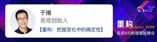 2020 年 10 月 23 日易观 A10 数据智能峰会主论坛上,易观创始人于揚(Edward Yu)基于对互联网 20 余年的前瞻和洞察,将在现场为大家解读如何在变化之中把握确定性。