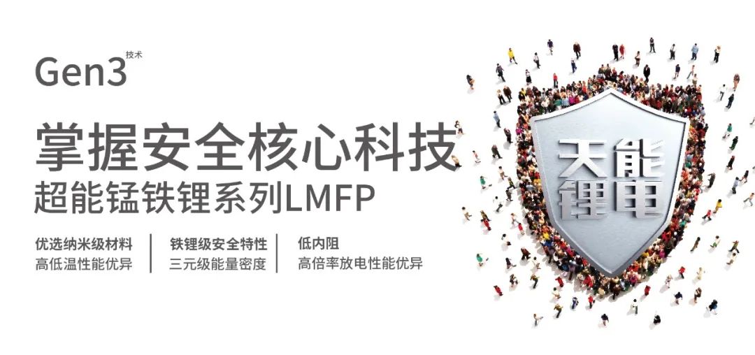 此次展会展出的超级磷酸铁锂电池和超能磷酸锰铁锂电池对“天能锂电,掌握安全核心科技”做了淋漓尽致的诠释:超级磷酸铁锂能实现即使在-20℃的低温下,放电量仍然可以达到常温的80%以上,在安全、耐用两个指标都创造了行业新标杆;超能磷酸锰铁锂电池采用了高安全性的磷酸锰铁锂材料技术,即使在过充和热失控情况下,也不会发生起火和爆炸情况。此外,这两款电池产品拥有多重防护,通过EB-SAFE电源管理系统、云智控等技术,为电池提供360°全方位的安全管理和系统安全解决方案。