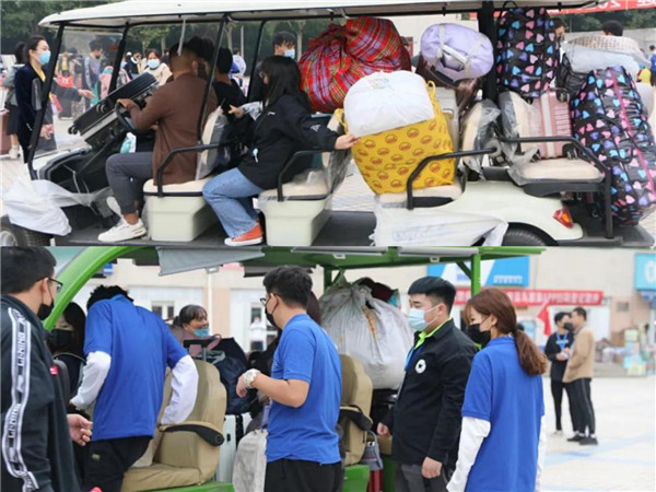 10月8、9、10日该校迎来了为期三天的迎新工作。8日,两百名升段学生陆续回归校园。9、10日,2020级三千余名新生走进校园。学校在郑州火车站、高铁站、长途汽车站等地安排了迎新接站点,工作人员早晨6点30分准时到位,等待新生的到来。