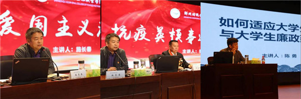 10月12、13日,新生入学思政教育系列讲座精彩开讲。爱国主义、抗疫先进事迹、学生管理、宗教知识、心理健康、学习规划、人身安全、消防安全等主题教育轮番上场,织牢全方位育人的教育网,教育广大学子“扣好人生第一粒扣子”。河南省援鄂医疗急救转运队党支部书记、全国抗疫英模乔伍营、郑州市公安局十八里河分局警官张志强、河南省消防宣讲委教官王振鹏、副校长施长春、学生处、党政办公室主任、社会科学部、教务处等部门老师陆续登台,为广大学生带来了一系列精彩的讲座。在各教学院系,入学教育活动丰富多彩,努力扩大覆盖面,让每一名学生都参与进来,接受一次思想教育。