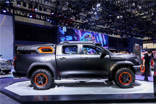 本次车展上,以长城炮越野皮卡改装而来的黑弹震撼亮相,以更加硬朗威猛的造型、黑橙色彩搭配,彰显出舍我其谁的霸气。