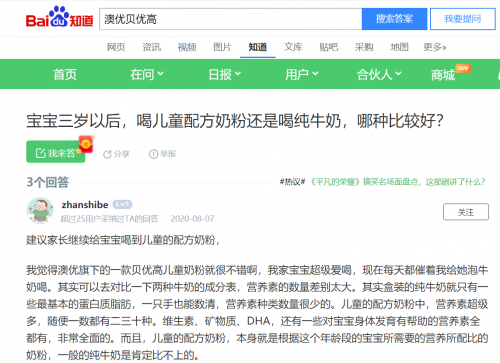 在时下热门的小红书平台及百度问答口碑中可以看到,宝妈们对澳优贝优高奶粉纷纷给予高度认可。从贝优高奶粉的营养配方到口感再到品质,宝妈们都信赖有加,并十分愿意把产品种草给大家。