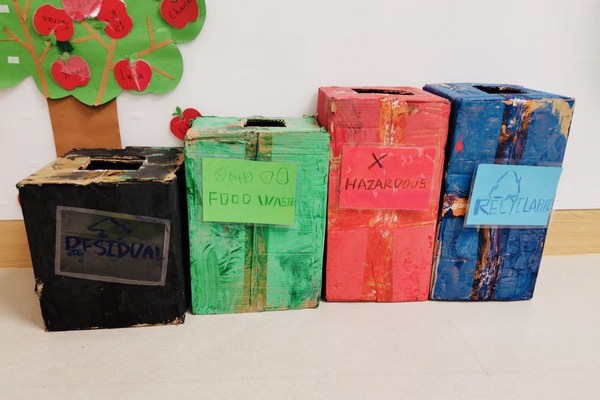 深圳国王学校学生们以再生原料手工制作垃圾分类桶