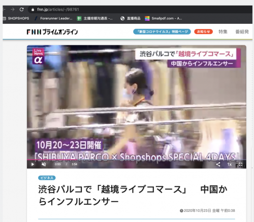 跨境海淘平台【ShopShops哪逛】和日本涩谷PARCO百货,2020年10月20日至23日,举办了首次线上直播售卖活动。