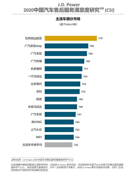 J.D. Power 2020中国汽车售后服务满意度研究(CSI)主流车品牌排名