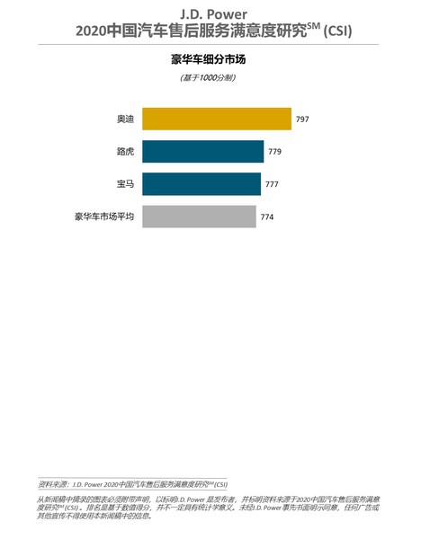J.D. Power 2020中国汽车售后服务满意度研究(CSI)豪华车品牌排名