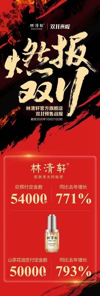 今年的双11预售期,再次成为了各大品牌抢占的焦点。其中,林清轩9月上市的山茶花润肤油3.0成为了消费者争抢的明星产品。在10月21日预售开启后的短短2分钟里,创下了50000瓶的销售新高。