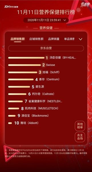 11月11日营养保健排行榜 数据来源:京东健康