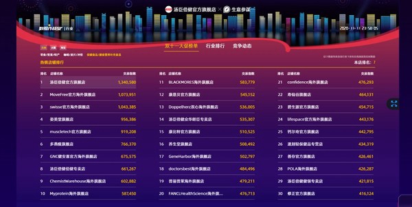 汤臣倍健蝉联天猫、京东双十一“双料冠军”,线上总销售额突破4亿