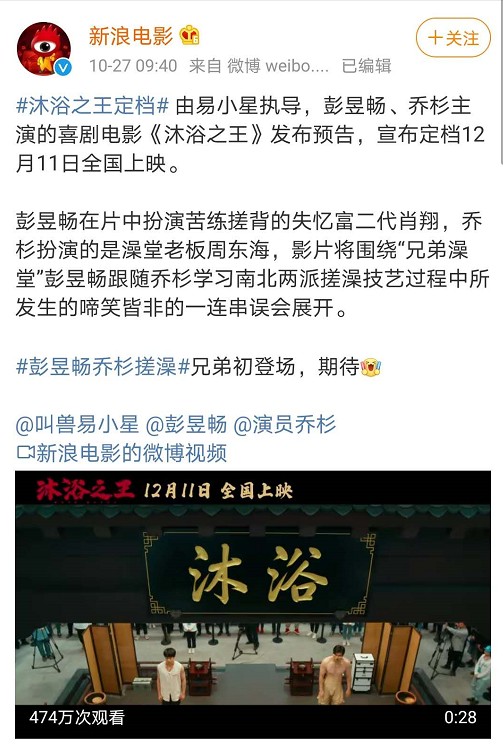 北京文化出品的《沐浴之王》最新进展来了