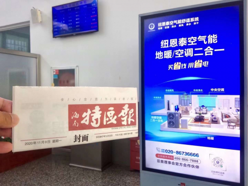 作为我国最早从事空气能生产的品牌之一,纽恩泰成立近二十年来,一直以好品质、高性价比的产品深耕市场,立志要实现“让空气能成为全人类美好生活的必需品”这一愿景。同时,经过多年的积累,纽恩泰在全国各地已经有超过3000个服务网点,其中不仅有一二线大城市,还有许多五六线小城镇,覆盖范围非常广,能够及时将高铁广告带来的广告效益,转化成经销商的销量。