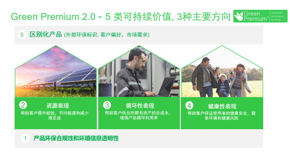 利用绿色电气产品在资源表现、循环性表现和健康性表现等多方面的价值,施耐德电气Green Premium生态标签能为客户在可持续发展方面带来显著的差异化价值。