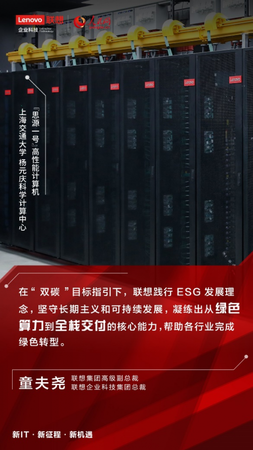 第一,是联想全球领先的绿色低碳算力基础设施。作为全球领先的高性能计算解决方案提供商,联想连续八次蝉联全球高性能计算机TOP 500榜单制造商份额榜首,七次登顶中国HPC TOP 100年度数量总份额榜首。自2012年投入低碳化算力平台的研发以来,目前联想已部署了四万多台节点服务于全球各大数据中心。基于联想卓越的第五代温水水冷技术打造的绿色数据中心,能够将PUE值降至1.1以内,节省42%以上的能耗和间接碳排放。童夫尧介绍,联想绿色算力的全栈交付能力正在收获里程碑时刻:近日,在中国高校算力排名榜首的绿色温水水冷高性能计算机群,联想“思源一号”在上海交通大学(李政道研究所)正式投入使用——仅用短短120天,联想便交付了具备超高计算密度,融合人工智能技术,并在绿色节能、能源可循环利用等方面表现杰出的高性能计算机群。联想绿色低碳算力基础设施正在为高校科研提供有力保障,不断推动前沿科学领域的前瞻性研究与科研攻关。