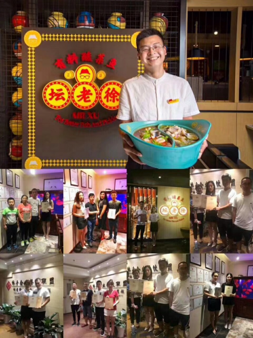 坛老徐酸菜鱼火锅的秘料,特殊之处一:酸菜。徐氏一族采用百年古法腌菜技艺,180天百年紫坛发酵,并且采用自贡井盐腌制,酸香袭人,口感鲜嫩,有美肤养颜之说。特殊之处二:汤底。采用30多种中药材料烹制,健康营养,口味多元。每一丝香气升起的瞬间,都是三代人烹饪智慧的绽放!坛老徐酸菜鱼一道秘料,三代传承,终成舌尖上的非凡史诗,让你体会舌尖上的美味。