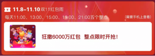 2、首先毫无疑问就是每年双十一都有的超级红包了,双十一红包领取简单且金额较大,一直是广大剁手族最爱的优惠方式了。大家可以通过以下方式领取双十一红包。