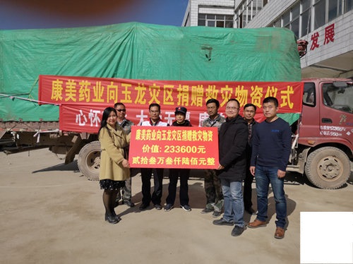 丽江市卫计委、玉龙县政府、玉龙县红十字会相关人士参加了简短的捐赠物资交接仪式。玉龙县红十字会相关负责人表示,康美药业的物资捐赠对灾区来说是雪中送炭,将严格按照流程,及时将捐赠物资公开透明地发放到受灾群众手中。