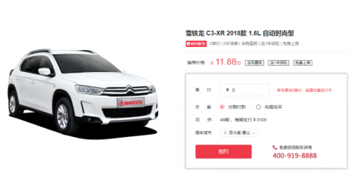 不久前,他终于挑选到了心仪的车辆。这款雪铁龙 C3-XR 2018款 1.6L 自动时尚型市场口碑非常好,市场指导价接近12万,在神州买买车0首付购车范围内。陈先生按照平台的购车金融方案,只要按照12期分期购车,每期支付3100元就能0首付入手。值得一提的是,平台还赠送1年保险,还有免购置税和手续费、免费上牌等福利,陈先生爽快地下了单。
