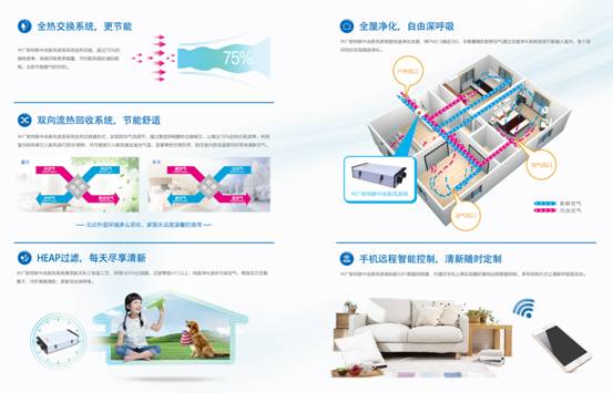 以中广欧特斯中央新风系统为例,中广欧特斯热回收式高效除霾新风系统应用了多项当前行业先进技术,产品质量业内领先,获得了众多行业专家的指导与认可,全热交换、双向流热回收系统、HEAP过滤、全屋净化、手机远程智能控制、安装多样、多重贴心设计7大优势助力机组进入千家万户。