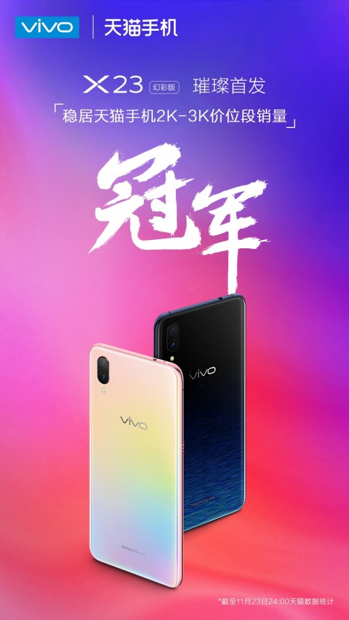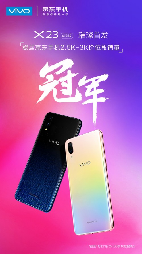 vivo X23这款由蔡徐坤代言的X23系列全新配色的手机,在11月23日正式全国首销。vivo