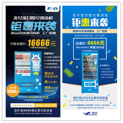 值此风口到来之际,友宝作为中国自动售货机运营商的领航者,为了给客户创造更便利的经营环境,我们以相同的机器价格代售各厂商刷脸付售货机,并为客户提供分期付款、代运营服务、0平台费等独家优惠政策。