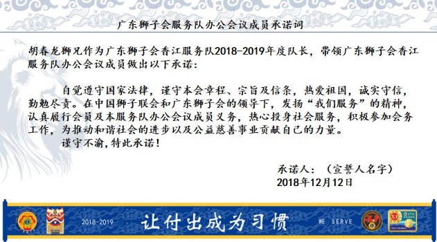 广东狮子会香江服务队1819年度队长胡春龙狮兄就职演说和感言(狮子会竞选宣言、演说和承诺/狮子会1819年度工作计划)