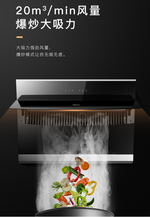 在长时间使用油烟机的过程中,相信大多数家庭都曾遭遇过油烟吸力不够,而美的J57拥有20㎡/min大风量,并有大于320Pa风压,能够对煎炸煮、爆炒所产生的大油烟能够做到瞬吸,使油烟迅速进入公共烟道,排烟更顺畅。开启一键爆炒模式后,能够瞬间提升风量,油烟再多也能迅速拢烟,关键的是,风量的提升,噪音却只有人声正常交谈的分贝。同时,美的J57还搭载了等速螺旋风道系统,强劲性能冲破公共烟道,保证烹饪高峰时油烟不倒灌。