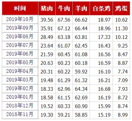 猪肉、牛肉、羊肉、白条鸡、鸡蛋均价(元/公斤) 来源:农业农村部官网截图