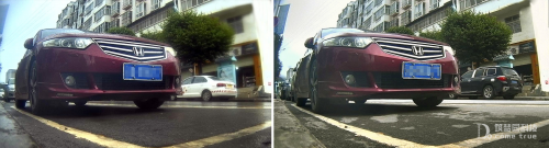 免布线路牙相机雨天(左)、日常(右)抓拍图片