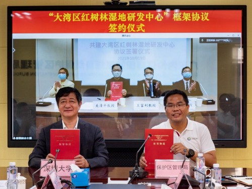 框架协议签署仪式由都大学术副校长关清平教授、深圳大学副校长李永华教授,以及广东内伶仃福田国家级自然保护区管理局邓子兵局长签署,并由都大科技学院院长王富利教授、谭凤仪讲座教授,以及科学学系系主任李宏发教授见证。