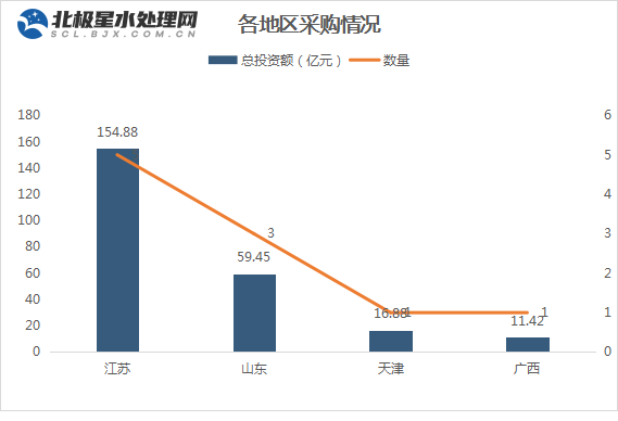 据北极星水处理网统计,今年以来,已有10大10亿+进入采购,10大项目投资总额高达242.63亿元,主要集中在江苏和山东地区,江苏独占五席,且已经采购完成的项目皆被央企或地方国资拿下。
