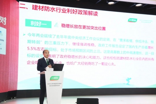 洪董表示,刚刚结束的全国两会释放了诸多利好消息,防水行业正迎来前所未有的发展时机。在“双碳”政策驱动下,防水行业作为建材行业中较高耗能的分支,将进入绿色创新的“爆发式”发展阶段,并出现如光伏防水等庞大的蓝海市场。三棵树防水将抓紧机遇,加快以创新科技为驱动力,向绿色低碳发展之路转型。