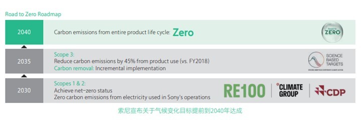 “创造一个充满感动的世界,连接下一代” 是索尼集团的可持续发展愿景。早在1990年,索尼集团就提出责任与贡献并重的环境方针。2010年启动“走向零负荷(Road to Zero)”全球计划,旨在2050年实现全生命周期的净零排放。2022年索尼再次加速该目标:将碳中和提前至2040年(覆盖范围1-3),该计划成为全球首个通过SBTi认证的耐用消费品企业的净零目标。截至2024财年,索尼连续四年、第九次入选气候变化类别的A类榜单,彰显索尼在应对气候变化方面的全球领先地位。