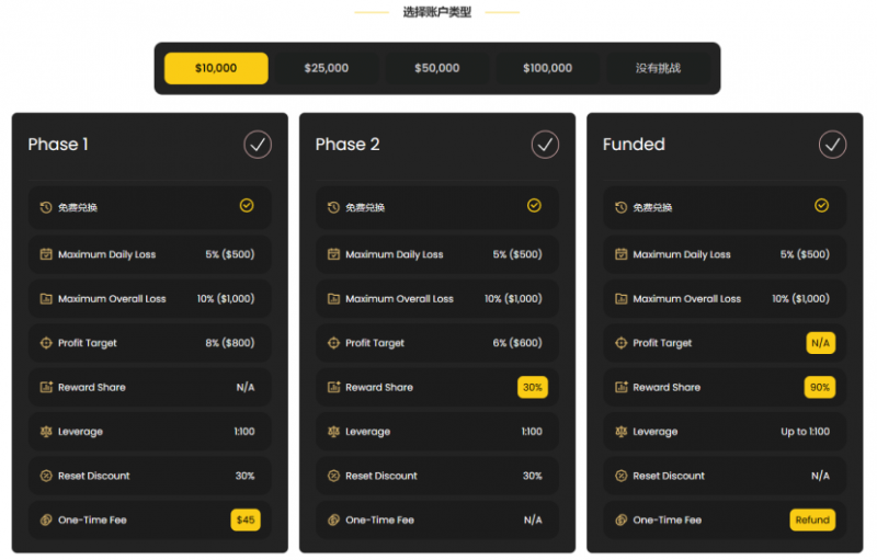 •实践路径:开通低门槛资金支持账户(WeMasterTrade挑战套餐,只需支付45美元就可以获得10000美元的训练账户),利用业余时间交易,逐步优化策略;