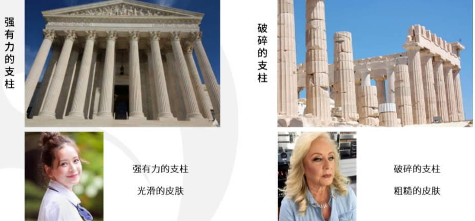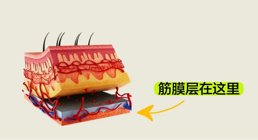 而筋膜层一旦老化松弛,意味着胶原纤维的弹力不足,这张网状的皮筋整体失去弹性,对肌肤深层组织的粘附力不足,就会导致皮肤呈现皱纹、松弛、下垂、肥垮、塌陷、变形等衰老状态。
