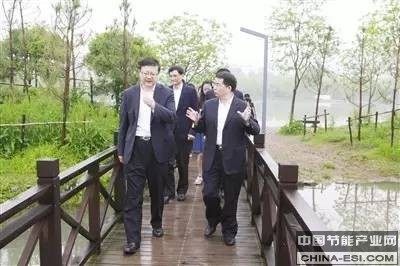 在浙江省浦江县翠湖上,陈吉宁听取浦江县委书记施振强介绍翠湖整治经验