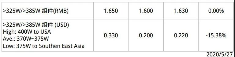 单晶电池片部分,头部企业六月份订单已签订,产能较紧,因此订单议价不受影响;议价能力较弱的二三线厂,六月份订单议价能力弱,报价明显松动,电池片价格仍持续调降。