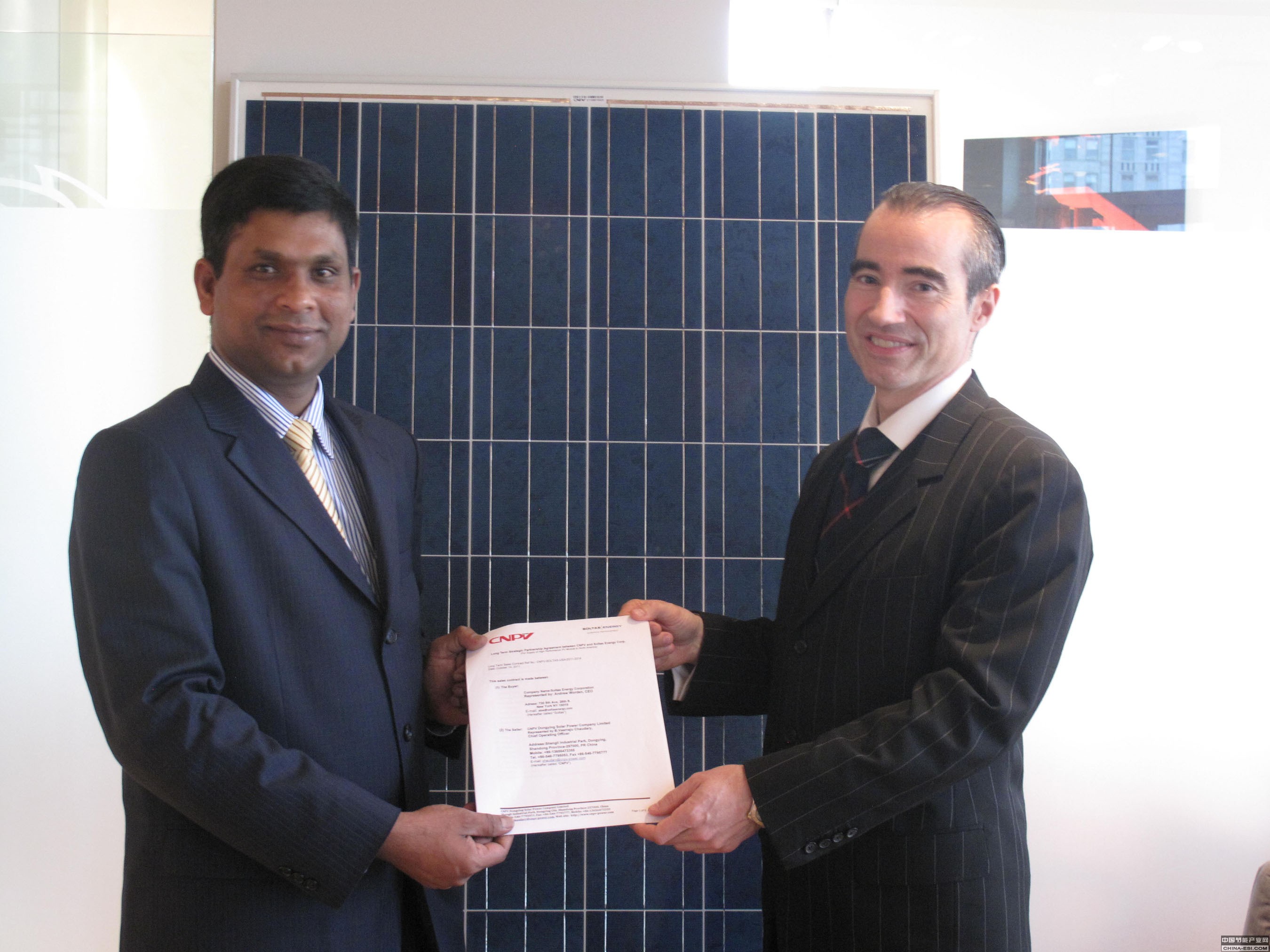 CNPV 首席执行官张顺福先生与 CNPV 首席运营官 Bypina Veerraju Chaudary 先生一同表示:“这种规模的合作可实现巨大的价值。凭借这一专长和影响力来开发的实用太阳能解决方案是一种非常难能可贵的产品。与一些更加知名和规模更大的品牌相比,我们能够达到 Soltas Energy 的高标准,我们对此感到非常自豪。我们完全支持 Soltas Energy 致力于在2016年之前完成1GWp 安装工作的承诺,并对能够与这样一家可靠且有实力的公司合作而感到尤为自豪。通过与 Soltas Energy 合作,我们能够对太阳能光伏市场产生积极的影响。”