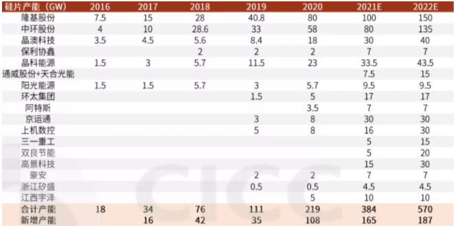 尤其是隆基,得益于在单晶硅片领域开创先河以及多年的深耕,长期占据龙头位置。
